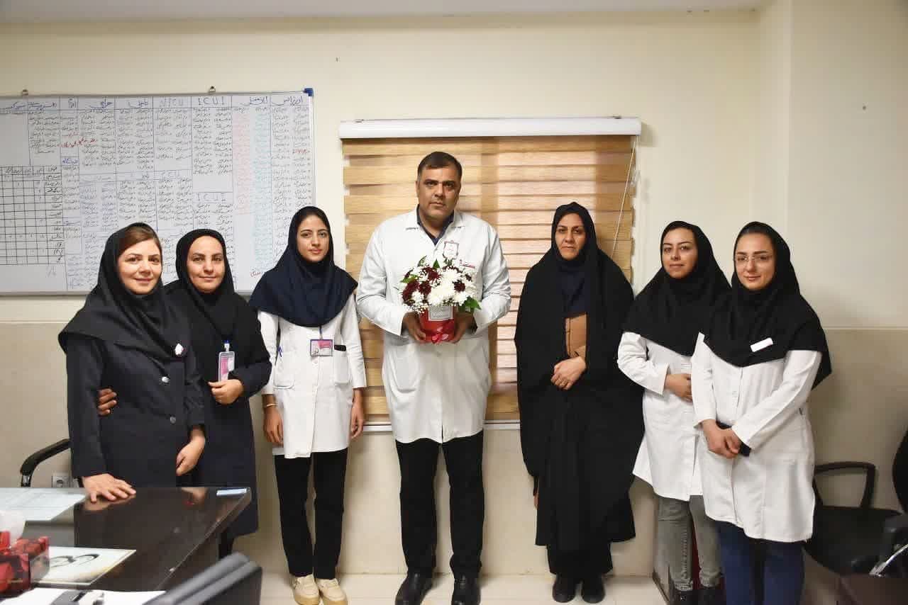 به مناسبت فرارسیدن روز پرستار، روز سهشنبه ۶ آبان، سوپروایزر مامایی بیمارستان با همراهی مسئول بخش مامایی و جمعی از ماماهای شاغل در بیمارستان با حضور در دفتر آقای صادقی مدیر خدمات پرستاری مرکز، ضمن گرامیداشت و تبریک این روز، با اهدای گل از تلاشها و زحمات شبانه روزی پرستاران مرکز تقدیر نمودند.